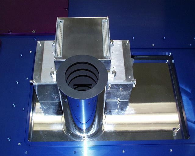 ASTROCAM - A 1024x1024 Aladdin array 1-5.5 micron camera ASTROCAM - A 1024x1024 Aladdin array 1-5.5 micron camerabuilt for the Naval Observatory and NRL. ASTROCAM is specifically designed for Astrometry, the accurate measurement of star positions. It will be used on the 1.5 meter Naval Observatory in Flagstaff, Arizona. It utilizes a 1:1 Offner relay, has two large filter wheels and a pupil imager. Cooling is provided by a CTI 1050 closed cycle cooler. MKIR designedand built the instrument and array controller.